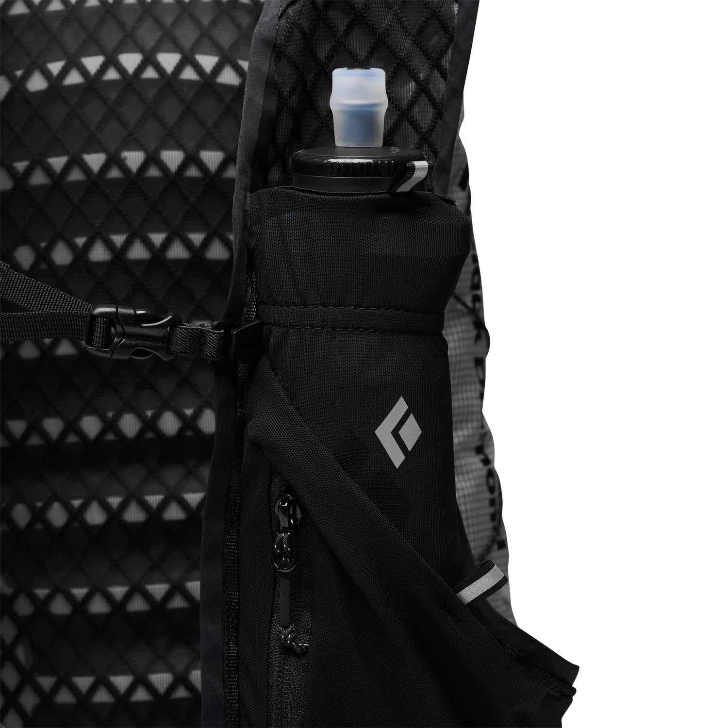 - Two soft flask pockets (soft flasks not included), one zip and two stretch shoulder strap pockets