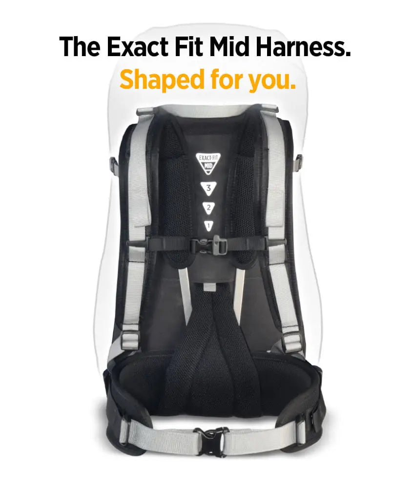 - The Traverse uses EXACT FIT Mid harness is compact, comfortable and lightweight option.