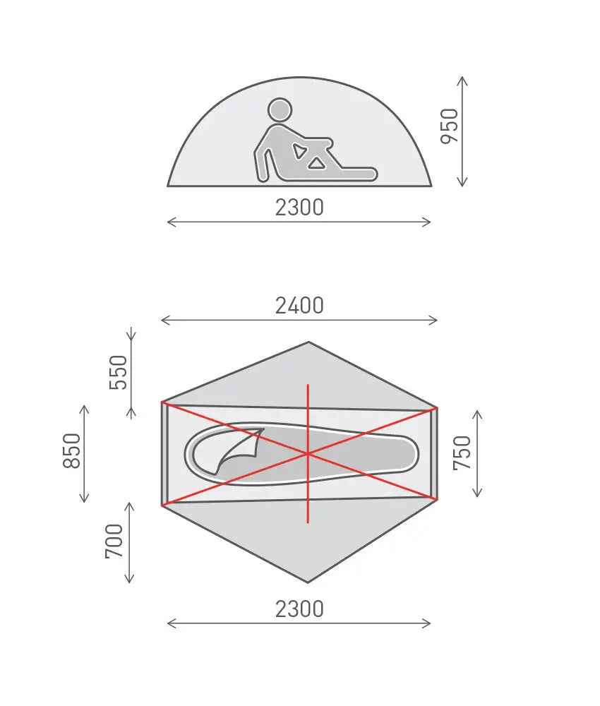 - Our tapered rectangular shape saves weight by eliminating obsolete space. (Set up with the foot end pointing into the prevailing wind for improved aerodynamic performance.)