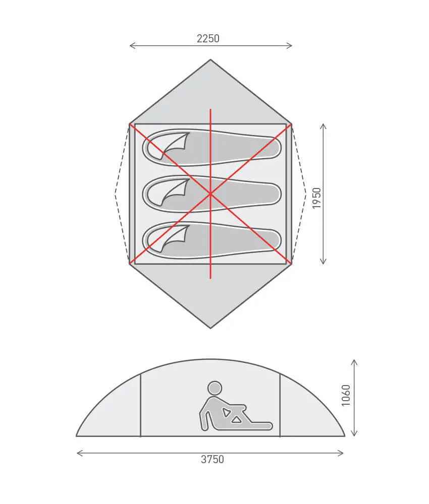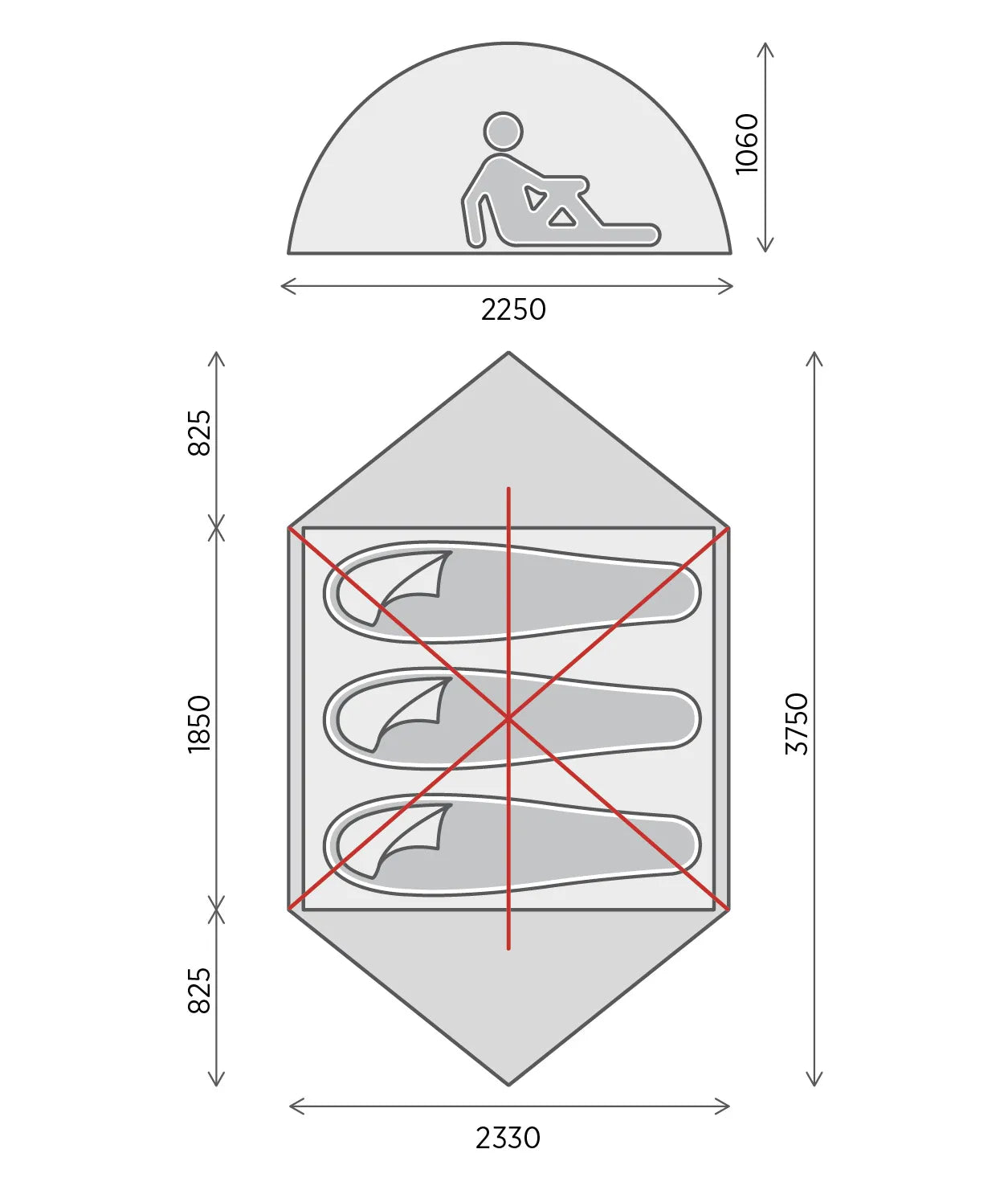 The floor plan maximises usable internal space and provides protection when accessing the tent. When setting it up, place the foot end (black webbing) directly into the prevailing wind for greater aerodynamic stability. We’ve carefully designed the fly, inner and door location to give you protection from uncomfortable weather conditions as you get in and out.