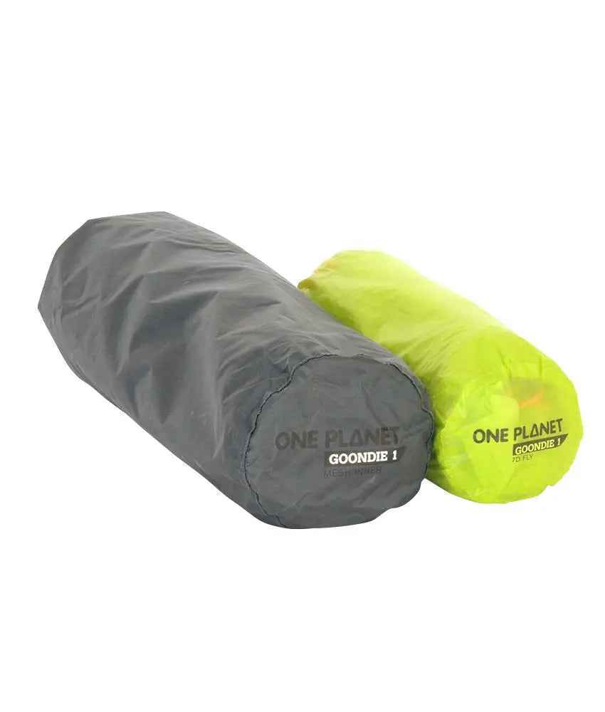 The Goondie series is versatile from the ground up, giving you choice in size (1, 2 and 3-person) and material and style. There are two completely compatible options for both fly and inner: the Goondie 1 nylon or mesh can be paired with either the 7 D nylon or 30 D polyester fly.