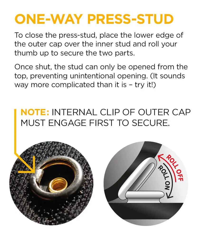 - Press-stud gives secure closure at the gaiter’s base