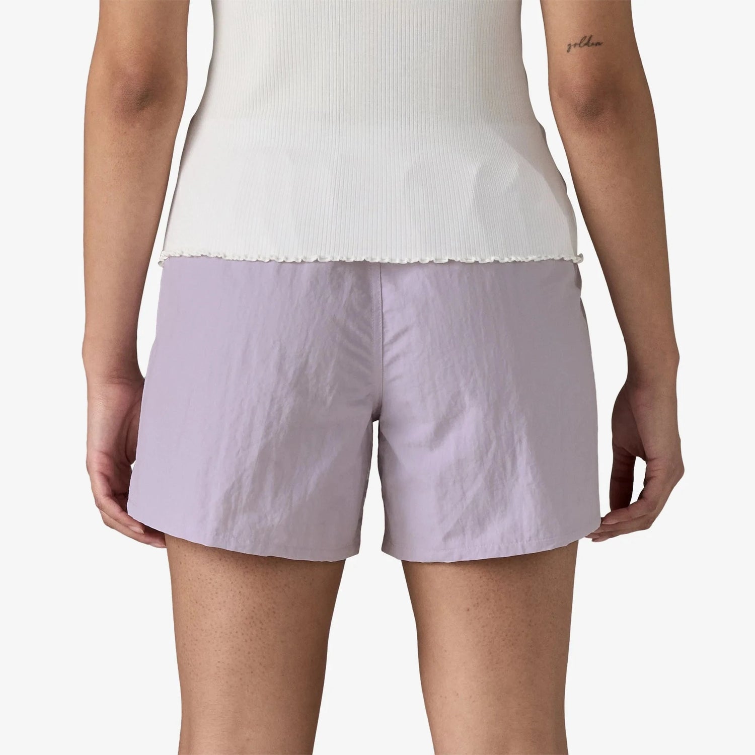 Patagonia's classic Women’s Baggies™ Shorts have a comfortable relaxed fit, a regular rise, simplified stitching on the waistband for all-day wear, and a 5" inseam. They’re built of lightweight, quick-drying NetPlus® 100% postconsumer recycled nylon faille made from recycled fishing nets to help reduce ocean plastic pollution; with a durable water repellent (DWR) finish made without intentionally added PFAS to shed light moisture.
